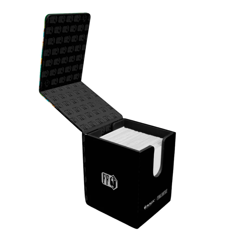 La caja de mazo Alcove® Flip Deck Box® de MAGIC: THE GATHERING®—FINAL FANTASY™ presenta un vibrante acabado de polipiel a todo color, un potente cierre magnético y dos ranuras para el pulgar para acceder fácilmente a tu baraja. Esta caja de mazo tiene capacidad para hasta 100 cartas coleccionables de tamaño estándar con fundas dobles y protectores de baraja Ultra PRO Deck Protector®.