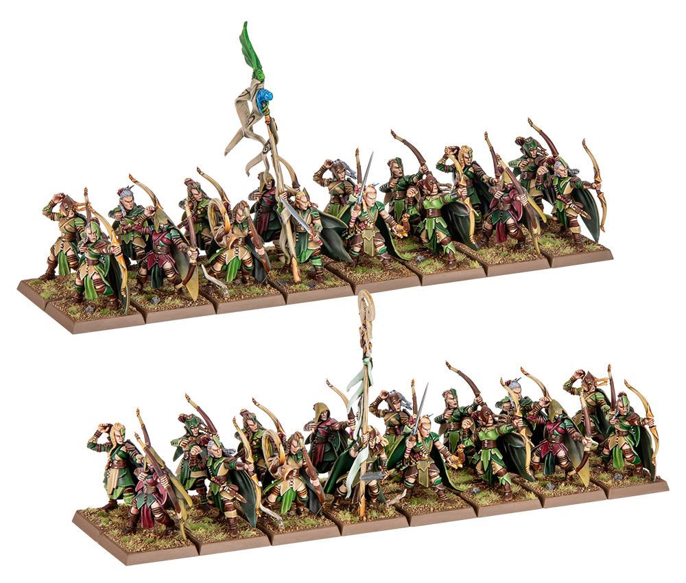 Caja de 32 arqueros Asrai con mando completo, configurables también como Deepwood Scouts. La base perfecta para construir la columna vertebral de tu ejército, capaz de disparar con precisión letal desde la distancia.