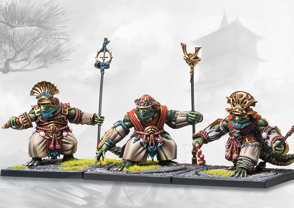 3 miniaturas de plástico de Brute, 3 peanas de caballería, 3 peanas de caballería, 2 cartas ideales e instrucciones de montaje. Abrazando las enseñanzas fluidas y adaptables de su reino, los Kappa Bushi son guerreros espirituales que buscan convertirse en uno con el Reino Primordial y sus almas. Sus incesantes esfuerzos por comprender la naturaleza unificada del Reino Primordial y su propia naturaleza adaptable han permitido a estos ascetas guerreros la capacidad de abrazar temporalmente las Epifanías de los otros reinos, lo que los convierte en algunos de los guerreros más temidos y versátiles de los Dominios. Canalizando su Iluminación para adaptarse a la situación, estos versátiles guerreros pueden adaptar su estilo de lucha, ya sea barriendo al enemigo o resistiendo sus ataques hasta que llegue el relevo.
