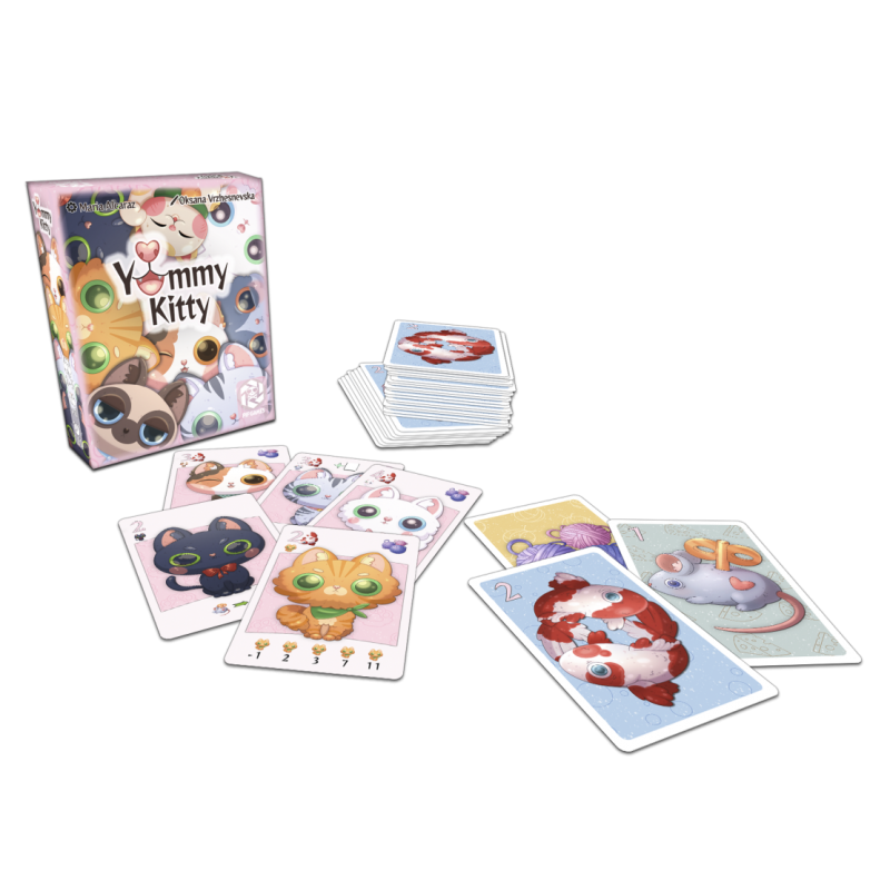 Yummy Kitty es un juego de 2 a 5 jugadores, de unos 15 minutos de duración, donde cada jugador deberá atraer a los gatos de otros jugadores con jugosa comida, y qué mejor que los peces. Pero ¡Cuidado! Una vez en tu comedero, los gatos pueden verse atraídos por los ratones que andan pululando por ahí. Haz que jugueteen con ovillos para que no prefieran ir detrás de algo más llamativo y suculento como los ratones.